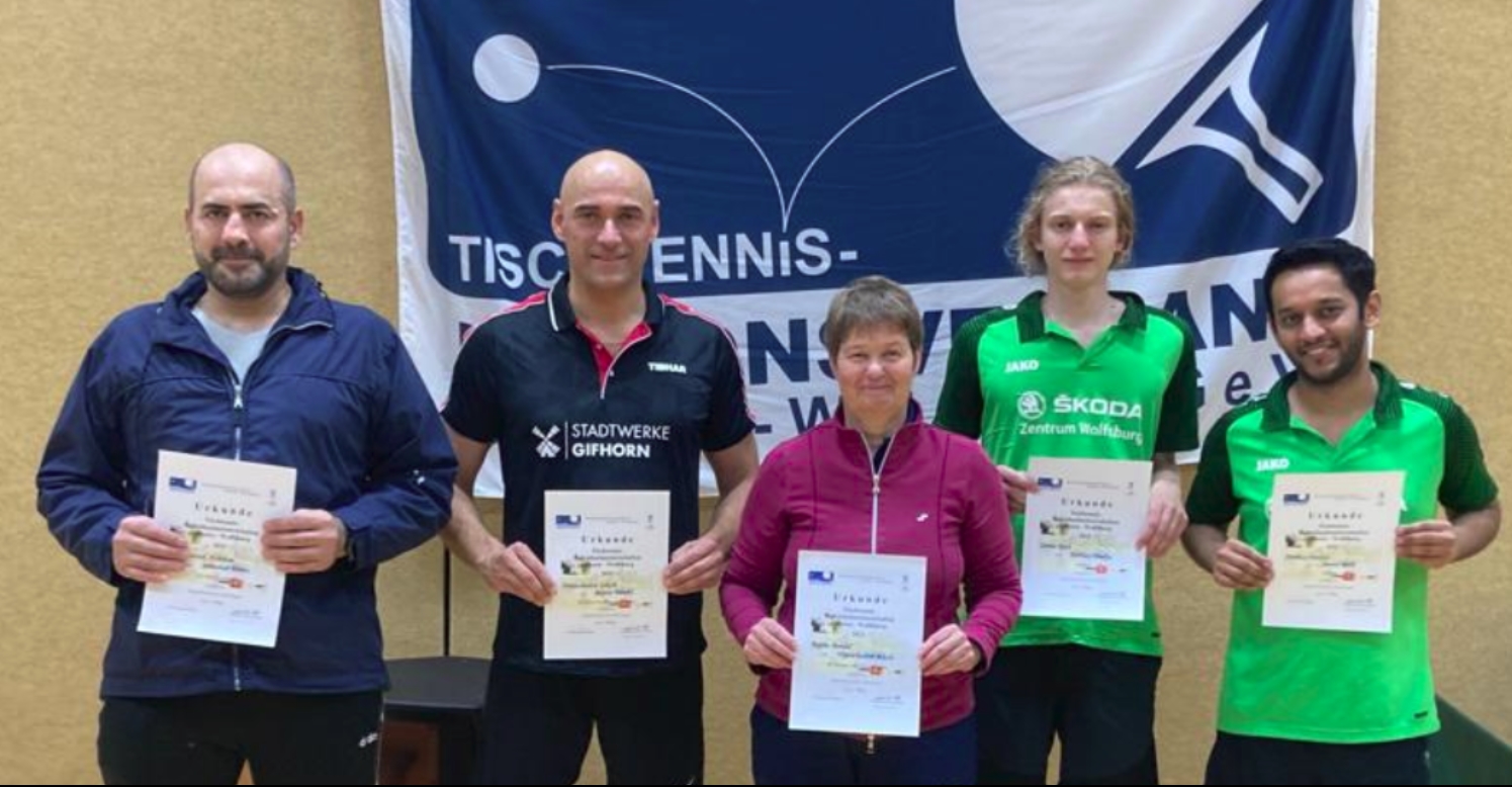 Burkhard belegte bei den Senioren Ü 65 im Einzel den 3. Platz; bei den Senioren 40 startete Abdul und belegte im Einzel den 3. Platz und landete auch im Doppel (40/50) mit seinem Partner auf den 3. Platz.